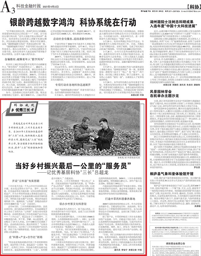 三州鄉(xiāng)是天臺(tái)縣一個(gè)九山半水半分田的山區(qū)鄉(xiāng)鎮(zhèn),農(nóng)業(yè)是這里的主導(dǎo)產(chǎn)業(yè)。茶葉、高山果蔬、紅色旅游等是當(dāng)?shù)赜兄欢ㄖ群兔雷u(yù)度的出產(chǎn)。作為鄉(xiāng)里的科協(xié)副主席和農(nóng)業(yè)副鄉(xiāng)長(zhǎng),呂超龍緊緊圍繞鄉(xiāng)產(chǎn)業(yè)基礎(chǔ)和群眾需求開(kāi)展科普工作,用科技力量支撐產(chǎn)業(yè)發(fā)展,用經(jīng)濟(jì)效益反哺科普工作。他領(lǐng)銜的“云科普”答題活動(dòng)獲評(píng)臺(tái)州市2020年度“三長(zhǎng)”示范項(xiàng)目。
