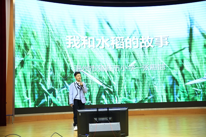 (三條圖)在家種水稻的張烜愷同學(xué)在演講