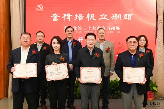 為用更好的精神風(fēng)貌向黨的二十大獻(xiàn)禮,10月13日下午,由浙江省工商聯(lián)、省社科聯(lián)、省僑聯(lián)、浙江工商大學(xué)指導(dǎo),浙商博物館、浙商研究院聯(lián)合主辦的“奮楫揚(yáng)帆立潮頭——喜迎黨的二十大浙商書畫展”于浙商博物館開幕。浙江省政協(xié)原副主席、黨組副書記、省慈善聯(lián)合總會(huì)會(huì)長(zhǎng)陳加元,省工商聯(lián)一級(jí)巡視員趙小敏,省僑聯(lián)二級(jí)巡視員陳林,浙江工商大學(xué)黨委委員、宣傳部部長(zhǎng)丁一志,許多相關(guān)單位領(lǐng)導(dǎo)及浙商代表出席開幕式。