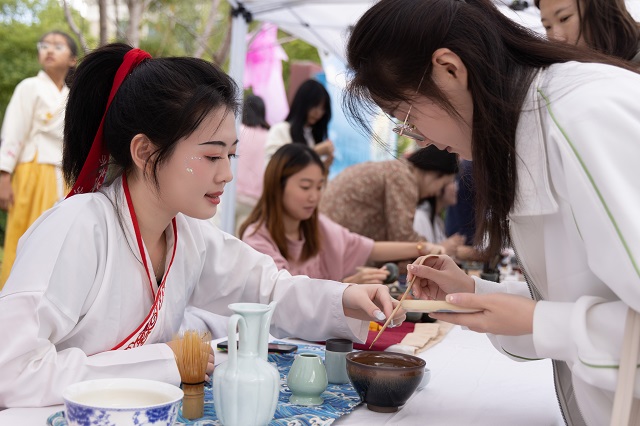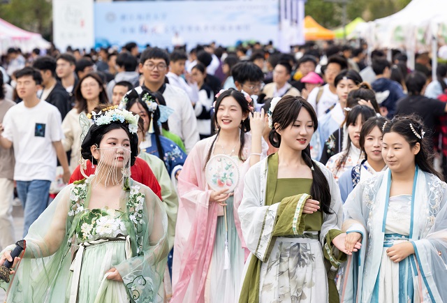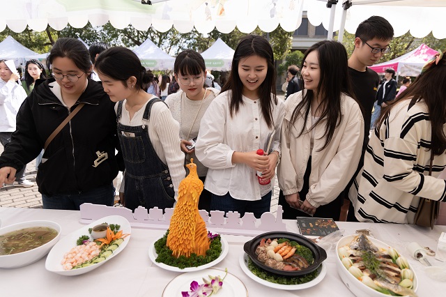 本次國(guó)風(fēng)文化節(jié)推出了十大主場(chǎng)活動(dòng)和十大學(xué)院分會(huì)場(chǎng)活動(dòng)。其中,“古韻煥美”國(guó)風(fēng)潮市集帶來(lái)了各類傳統(tǒng)美食、傳統(tǒng)手作和古風(fēng)飾品,富有濃濃傳統(tǒng)文化氣息的生活市集,為師生和市民帶來(lái)了獨(dú)特的游園體驗(yàn)。秋風(fēng)起,佳景時(shí),“曲韻流芳”戲曲面對(duì)面活動(dòng)設(shè)置了折子戲表演、戲劇妝造展示、戲劇周邊互動(dòng)、戲曲臉譜作品展等環(huán)節(jié),彰顯中國(guó)戲曲文化的深厚底蘊(yùn)!皾h韻華章”漢服文化展演秀選擇以漢服成人禮、歷朝漢服秀、留學(xué)生漢服交流、旗袍走秀等活動(dòng)內(nèi)容,將歷朝服飾之美融入當(dāng)下校園生活,增強(qiáng)師生華夏民族文化自信!昂m崅鞒小狈沁z體驗(yàn)項(xiàng)目則邀請(qǐng)漁民號(hào)子、舟山船模、海洋剪紙、漁繩結(jié)、海洋刺繡、海洋布藝等眾多非遺傳承人進(jìn)校,開展非遺項(xiàng)目展覽體驗(yàn)活動(dòng),弘揚(yáng)舟山海洋文化的獨(dú)特魅力。師生和市民紛紛表示,浙江海洋大學(xué)國(guó)風(fēng)文化節(jié)是繼校園櫻花節(jié)后最盛大的活動(dòng),開放的姿態(tài)是吸引觀眾的最大亮點(diǎn)。