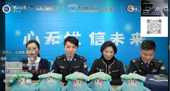 為了向廣大人民群眾普及反詐知識,減少詐騙案件的發(fā)生,提高人民群眾的自我保護意識和防范意識,筑牢全民防詐的“心理防線”,共同打贏反詐攻堅戰(zhàn)。日前,在杭州市蕭山區(qū)公安分局的指導(dǎo)下,杭州銀行晨暉小微綜合支行(下稱晨暉支行)聯(lián)合新塘派出所、杭州蕭山技師學(xué)院三方合作,共同舉辦了一場活潑生動又令人深省的反詐騙直播公益宣傳活動。