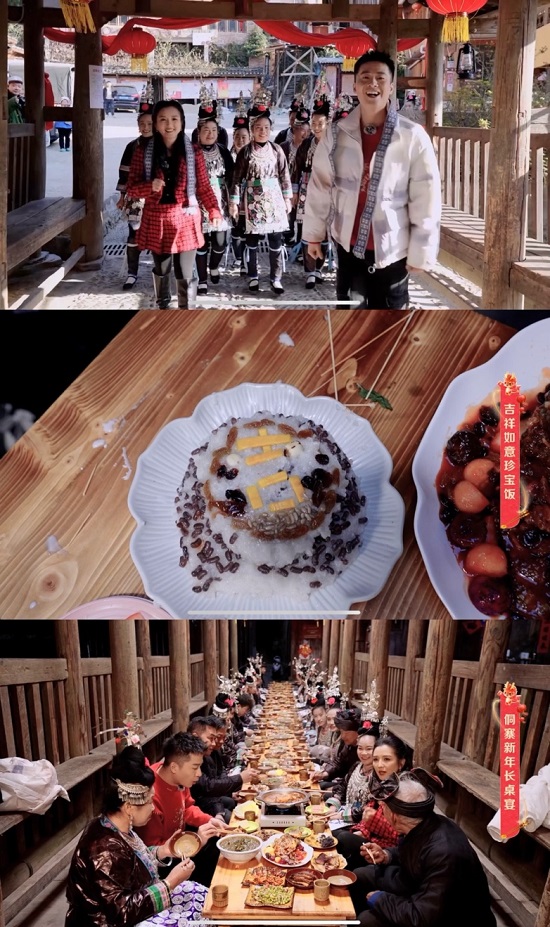 如果說東北人招待客人的最高禮儀是進(jìn)屋上炕,那么在貴州黔東南,這里的人們則習(xí)慣用歌舞來表達(dá)熱情。2月5日,明星何潔與鮮肉廚師帶著屏幕前的老鐵來到了貴州侗寨,與當(dāng)?shù)匾黄鹄相l(xiāng)親手制作了充滿地域特色的“長桌宴”,在美食美酒、載歌載舞中歡度春節(jié)。