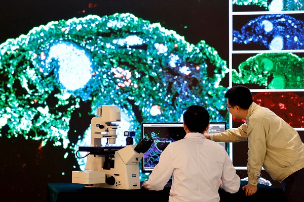 “由我們公司牽頭的‘十四五’國(guó)家重大項(xiàng)目科研成果NSR950,學(xué)名叫全光譜高分辨率活細(xì)胞激光共聚焦顯微鏡。它突破了百納米超分辨顯微系統(tǒng)制造技術(shù),分辨率相當(dāng)于人眼極限的1100多倍!庇佬鹿鈱W(xué)總經(jīng)理毛磊說。