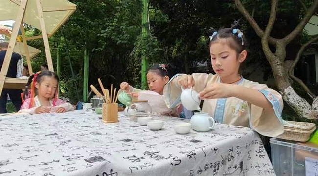 孩子們通過賞、品、逛、玩,近距離體驗(yàn)非遺,在多感官浸潤(rùn)下,感受傳統(tǒng)非遺文化的魅力。大一班胡鈺祺家長(zhǎng)、浙江大學(xué)環(huán)境與資源學(xué)院老師邢沁青說:“小朋友們通過親身體驗(yàn),對(duì)傳統(tǒng)手工藝、民間藝術(shù)、民俗活動(dòng)等非遺文化都有了更深刻的理解,這種文化浸潤(rùn)的方式比背唐詩(shī)、誦古文要形象得多,文化自信也在潛移默化中樹立起來了。非常感謝幼兒園的精心策劃和老師們的辛勤付出,孩子們?cè)诖笕A西溪風(fēng)情幼兒園度過了快樂而有意義的童年時(shí)光。”