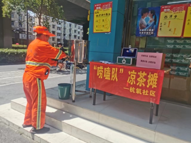 近日,杭州市拱墅區(qū)東新街道杭氧社區(qū)黨群服務中心門口設(shè)立了一個“愛心涼茶攤”,專為環(huán)衛(wèi)工人、外賣小哥、快遞員、交警等戶外工作者及過往居民提供免費的涼茶和防暑藥品。據(jù)悉,杭氧社區(qū)涼茶攤開放時間為每天11:00-16:00,將持續(xù)開放到8月底。(冷耀聞)