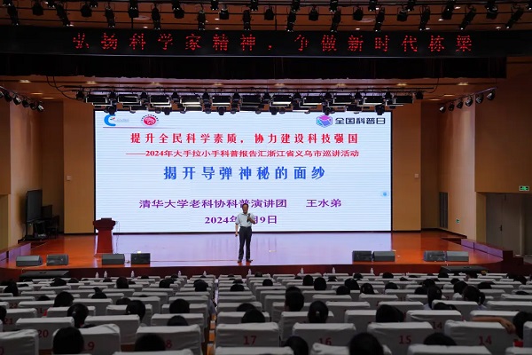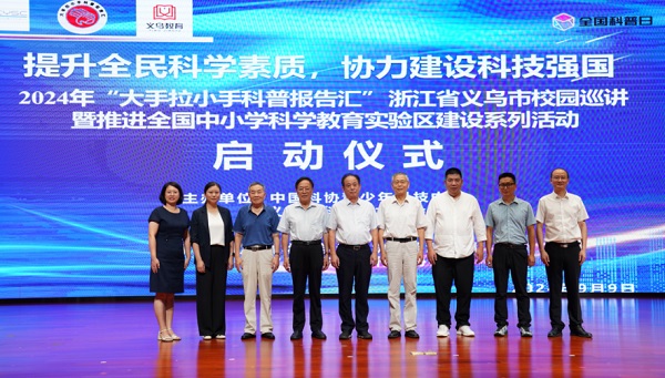 9月9日,由中國科協(xié)青少年科技中心、義烏市科協(xié)、義烏市教育局主辦的“提升全民科學素質,攜手建設科技強國——2024年大手拉小手科普報告匯浙江省義烏市校園巡講活動”暨義烏市推進全國中小學科學教育試驗區(qū)建設系列活動在稠城一小正式啟動,來自清華大學老科協(xié)科普演講團的5位老師也一起參加了啟動儀式。
