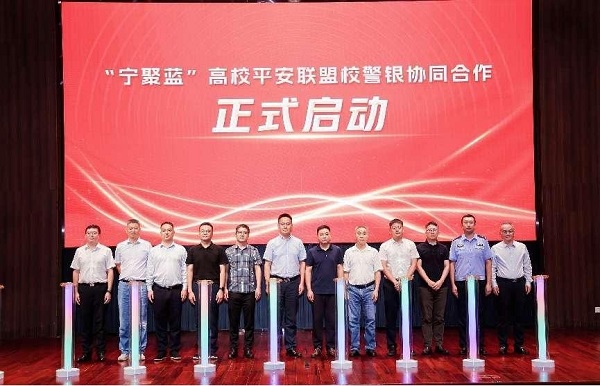 活動(dòng)現(xiàn)場舉行了“寧聚藍(lán)”高校平安聯(lián)盟校警銀協(xié)同合作啟動(dòng)儀式。今后將繼續(xù)守護(hù)平安校園,創(chuàng)造和諧安全的金融消費(fèi)環(huán)境。