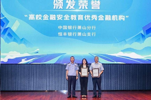 近年來,金融機(jī)構(gòu)和媒體單位積極配合公安開展反詐進(jìn)高校宣傳活動(dòng),中國銀行蕭山分行和恒豐銀行蕭山支行獲得“高校金融安全教育優(yōu)秀金融機(jī)構(gòu)”榮譽(yù),浙江廣電新媒體有限公司獲得“高校反詐宣傳優(yōu)秀單位”榮譽(yù)。