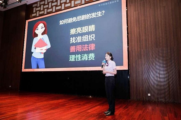 活動(dòng)現(xiàn)場中國銀行蕭山分行公益宣講師,為大學(xué)生普及理財(cái)與投資的定義、區(qū)別以及個(gè)人征信等相關(guān)知識,提醒大學(xué)生要樹立正確理性的消費(fèi)觀念,珍愛個(gè)人信用記錄,養(yǎng)成良好的消費(fèi)習(xí)慣。
