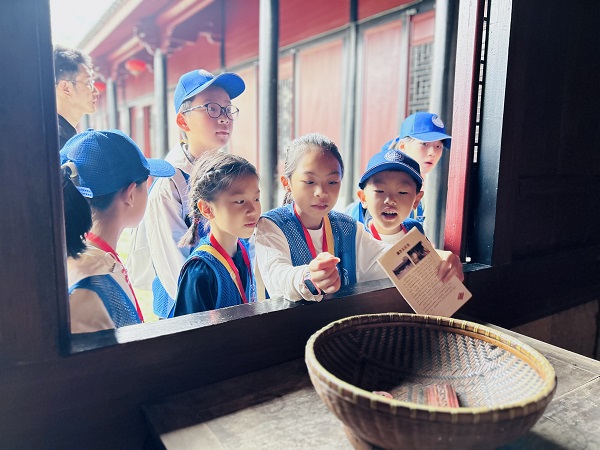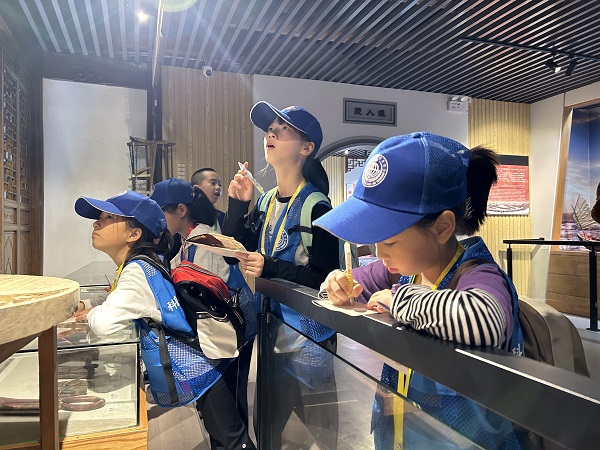 在展茅五匠館,孩子們跟隨帶隊老師的腳步,參觀學(xué)習(xí)“五匠”的工藝特點、應(yīng)用場景等知識,了解普陀百作工藝的智慧結(jié)晶,感受“五匠”精神,傳承匠人之心。整個過程中,大家一面聽一面記,將所見所思所得融入在自己的文字中。