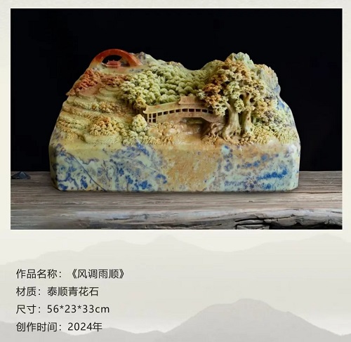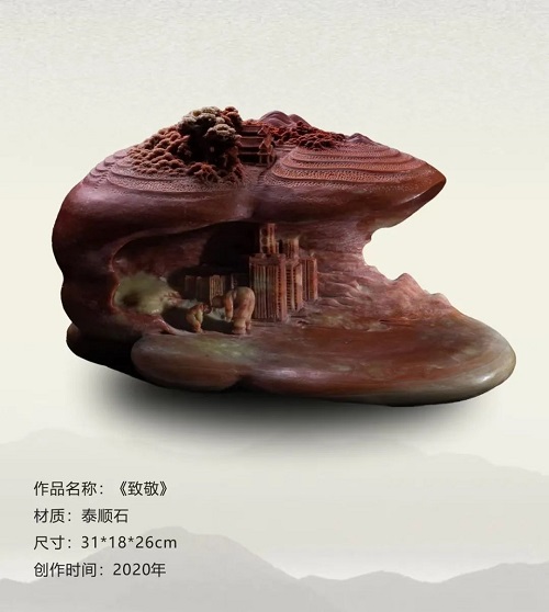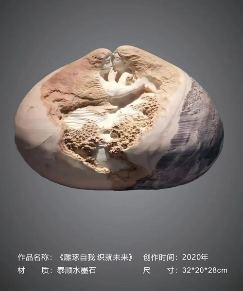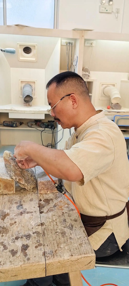 在潘成松眼中,石頭絕非普通的材質(zhì),而是承載著無限可能的藝術(shù)寶藏,是匠心獨(dú)運(yùn)的結(jié)晶。潘成松說,“我喜愛石頭,它是超億年‘歲月見證者’。億萬年中,地殼運(yùn)動(dòng)、風(fēng)雨打磨,石上蝕痕訴說地球變遷。我以雕刀,助石頭重綻光芒、回歸自然之美,這是我矢志不渝的追求!