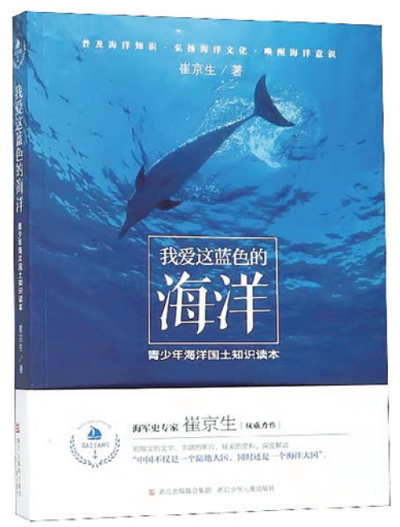 看了由海軍史專家崔京生寫的《我愛這藍色的海洋》這本書后,我大受震撼。書的封面有著一大片的海洋,由深淺不一的藍色構成,海洋里還有一只鯨魚,看不清它的樣子,卻為這本書增添了一抹神秘而又富有生命力的色彩。