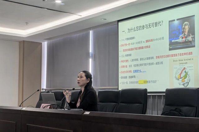 李曉燕教授是華東師范大學(xué)特殊教育學(xué)博士,現(xiàn)為溫州大學(xué)孤獨(dú)癥兒童教育與康復(fù)研究中心主任,專注孤獨(dú)癥干預(yù)研究20年。她為家長(zhǎng)們帶來了一場(chǎng)生動(dòng)實(shí)用的培訓(xùn)課程。李教授通過四個(gè)長(zhǎng)期跟蹤案例的展示,著重闡明了家長(zhǎng)深度參與干預(yù)的重要性,讓家長(zhǎng)們深刻認(rèn)識(shí)到“日常生活互動(dòng)時(shí)間就是最好的干預(yù)時(shí)機(jī),比如吃飯時(shí)描述飯菜的顏色、形狀、味道等”,并現(xiàn)場(chǎng)傳授了“家庭干預(yù)三大黃金法則”,號(hào)召家長(zhǎng)立即行動(dòng)。