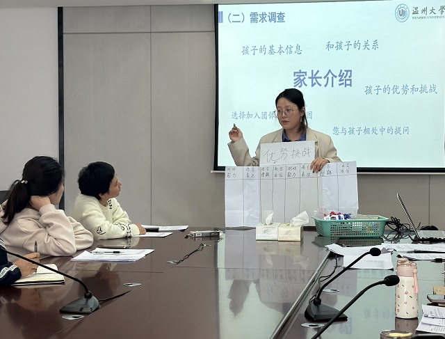 一個(gè)溫暖的春日早晨,溫州市殘疾人康復(fù)服務(wù)指導(dǎo)中心五樓509會(huì)議室里座無虛席。攥著筆記本謄寫溝通要點(diǎn)的媽媽,戴著老花鏡認(rèn)真錄音的奶奶,用手機(jī)記錄課件內(nèi)容的爸爸……
