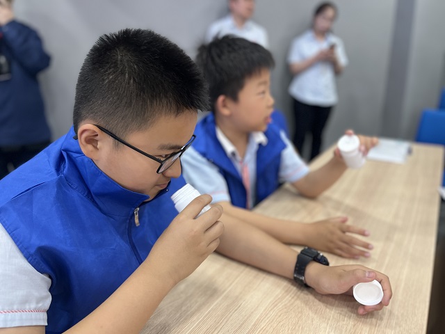 如果說陳列室是時空交織的回響,科普課堂則是一場沉浸式的探香體驗。當科技輔導員拋出“聞香祛病是傳說還是科學”的疑問時,同學們的好奇心瞬間被點燃。兩場“嗅覺實驗”更是課堂氛圍推向高潮。