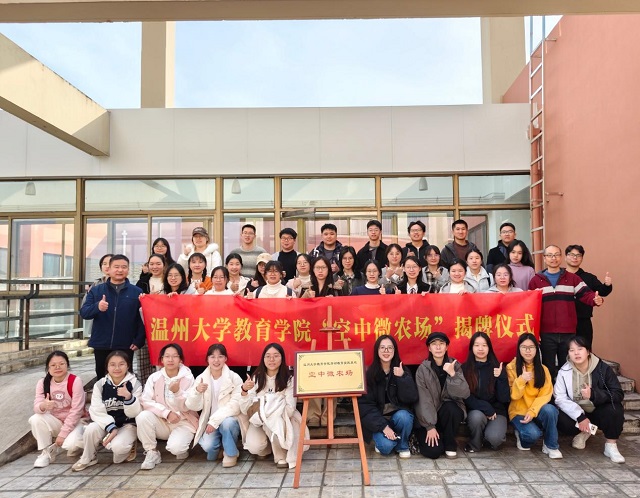 11月27日下午,溫州大學(xué)教育學(xué)院“空中微農(nóng)場”勞動(dòng)教育實(shí)踐基地揭牌儀式在學(xué)院空中走廊舉行!