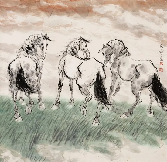 1978年下半年起,他與杰出畫家李山朝夕相處、亦師亦友,在藝術上不斷精進,李山赴美國前特地贈畫鼓勵,這段情誼成為他藝術道路上的珍貴養(yǎng)分。忘年之交張一弓曾拍著他的肩慨然道:“駿馬,強國之象征!它心懷忠義,積極向上。